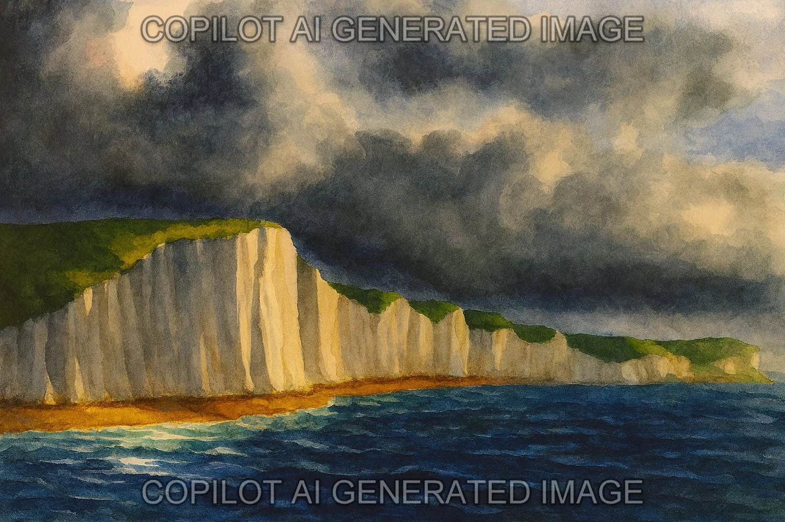 I don’t have a reference photo which shows the type of brights with cloud shadows on the cliffs which matches my image - so I did ask copilot to take my picture and attempt to improve it with some natural looking shadows.